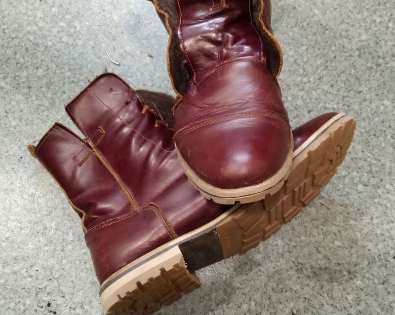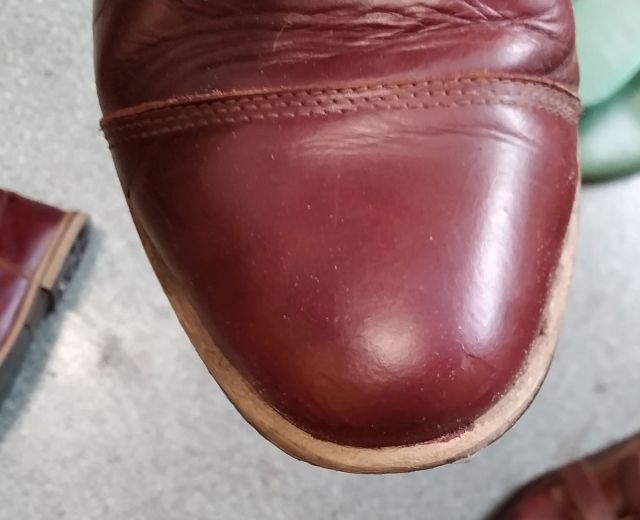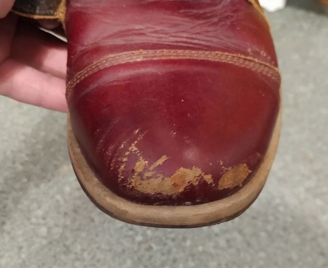 Oprócz renowacji skóry na czubkach, wykonane zostały też nowe spody w postaci wklejenia zelówek oraz fleków.